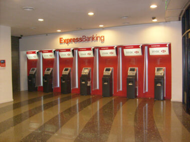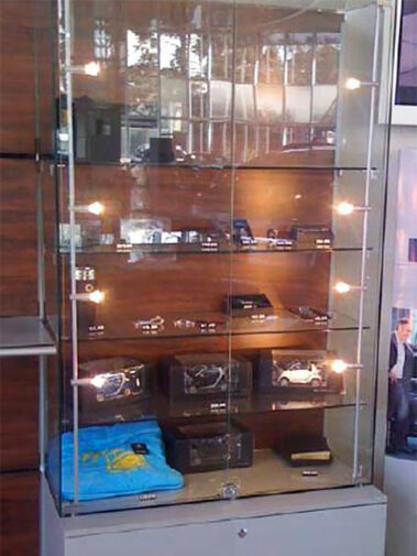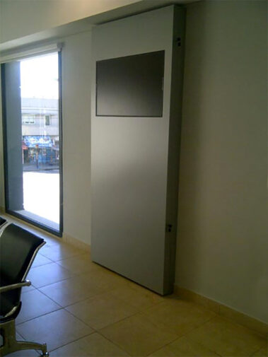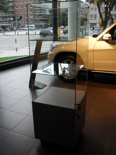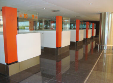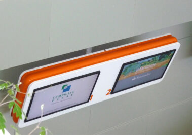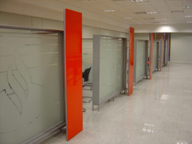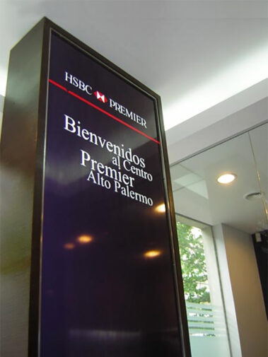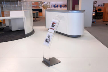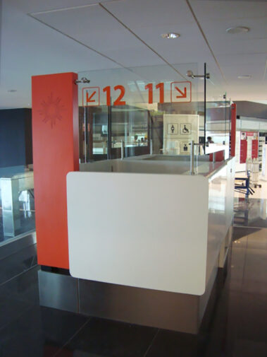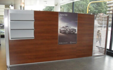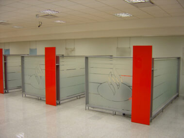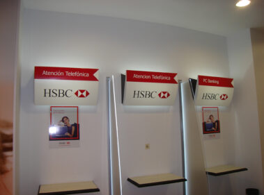Son aquellos que facilitan la información y simultáneamente por sus diseños, colores y morfología identifican a la institución. Ejemplos: Muebles para cajeros de bancos, displays, elementos de soporte para promociones, pantalla para centros de información, porta folletos, porta afiches, soportes para iluminación, mamparas divisorias de puestos de trabajo, etc.