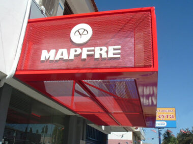 Es una estructura que vuela desde la fachada del edificio prolongándose hacia la calzada. Puede o no marcar el acceso principal al local como así también ocupar varios pisos del frente y esta integrada en su construcción y materiales a la imagen corporativa o institucional del cliente. Se utiliza para anunciar servicios y productos del lugar o como elementos publicitario. A través de su diseño, estilo o arquitectura buscan comunicar la imagen de la empresa.